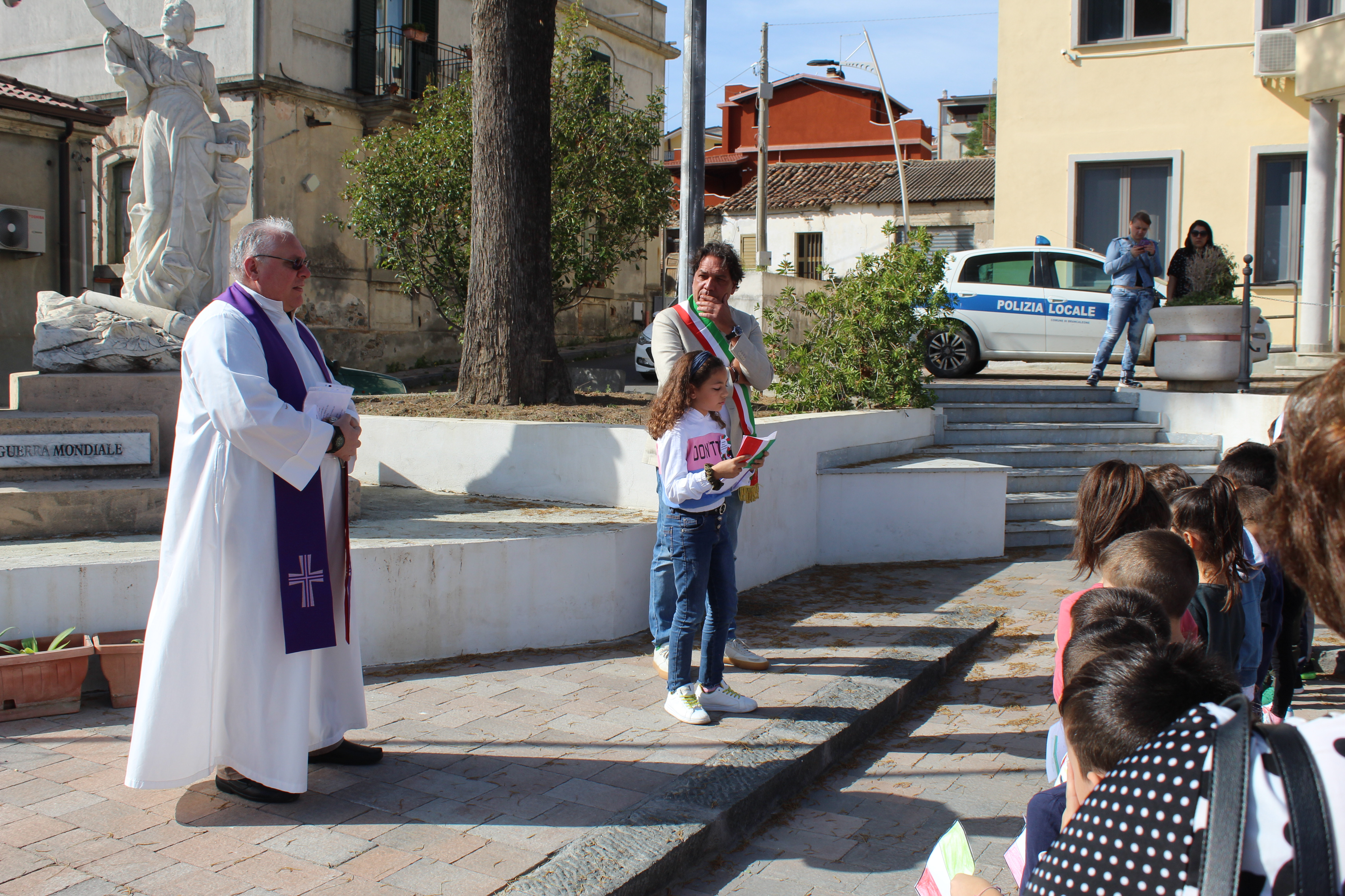 Venerdi 4 novembre, in occasione del Giorno dell’Unità Nazionale - Giornata delle Forze Armate, si è tenuta alle 11 in piazza Municipio la deposizione di una corona d’alloro presso la stele che ricorda i caduti in guerra di Brancaleone. Il 4 novembre 1918 è la data della fine della Prima Guerra Mondiale, cosi come per onorare i sacrifici dei soldati caduti a difesa della Patria il 4 novembre 1921 ebbe luogo la tumulazione del "Milite Ignoto", nel Sacello dell'Altare della Patria a Roma. Alla cerimonia hanno presenziato il Sindaco Silvestro Garoffolo con la giunta e i consiglieri, il Comandante della Stazione Carabinieri Maresciallo Cianci, la Polizia Locale, il parroco Don Vladimiro Calveri, e l’associazione ANPAGEPA Guardie zoofile e Protezione Civile. La cerimonia ha visto la partecipazione attiva dei bambini della scuola primaria di Brancaleone, che accompagnati dagli insegnanti hanno recitato una poesia dedicata ai caduti e per l’occasione cantando l’inno di Mameli hanno sventolato le bandierine tricolori preparate in classe. La presenza dei giovanissimi è stata emozionante soprattutto nel vedere la spontaneità con la quale hanno partecipato, ma in particolar modo la passione con cui hanno acceso la giornata. E’ stata una cerimonia breve ma caratterizzata da un vivo coinvolgimento, con l’auspicio del Sindaco rivolto ai bambini, in qualità di futuri cittadini italiani di ricordare e tenere vivo il sacrificio di tanti che hanno dedicato la loro vita all’unità e alla difesa dell’Italia. Toccante anche la preghiera e la benedizione di Don Vladimiro, in cui oltre al ricordo dei defunti si chiede la protezione per chi oggi indossando una divisa difende i diritti e la libertà di una comunità.